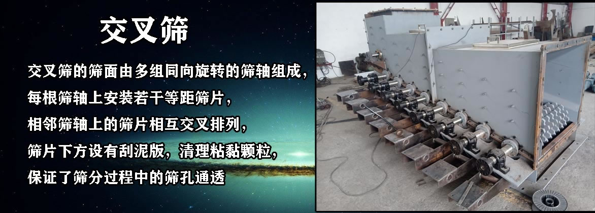 交叉篩滾軸篩的一種,它是在傳統(tǒng)滾軸篩基礎(chǔ)上研制出的一種篩分設(shè)備,目前市場(chǎng)上的傳統(tǒng)滾軸篩產(chǎn)品使用中存在卡堵、纏繞、密封不好、漏粉等諸多問(wèn)題,我公司針對(duì)傳統(tǒng)滾軸篩存在的問(wèn)題,研發(fā)出新型的交叉篩產(chǎn)品,從根本上能夠解決傳統(tǒng)滾軸篩的弊端,無(wú)論何種(干、濕、粘物料)工況,國(guó)盛交叉篩都以卓越的效率和可靠性展示其篩分能力,同時(shí)將維護(hù)成本保持在較低水平。